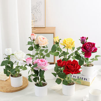 Alta seta simulata rosa pianta in vaso 10 bordi arrotolati nero ciottoli pentola decorazione Desktop per la laurea cinese nuova schiuma