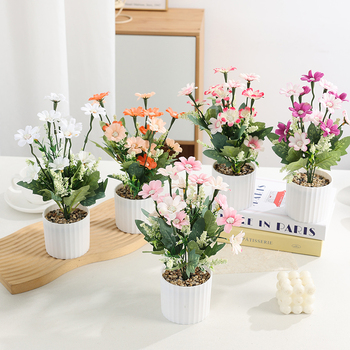 Piccolo margherita crisantemo fiore simulato casa ufficio decorativo pianta artificiale vaso per la scrivania di san valentino capodanno